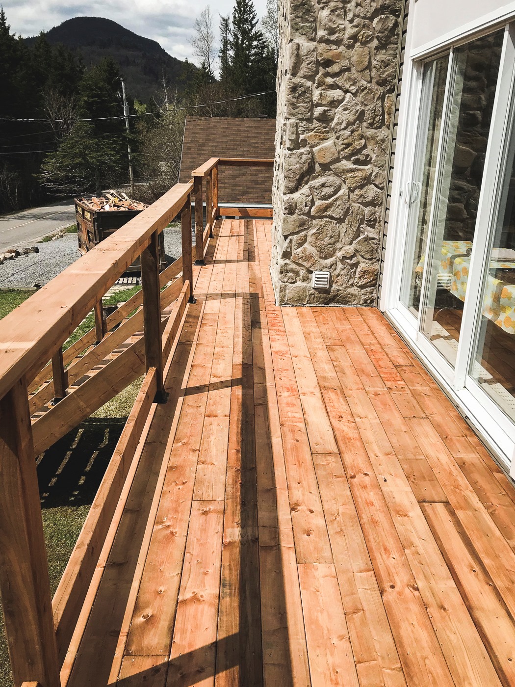 côté afin d’aller rejoindre la porte arrière. Terrasse parfaite pour bien profiter de l’été.