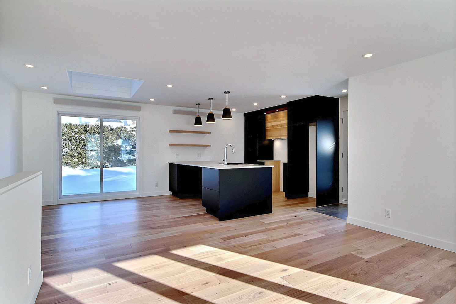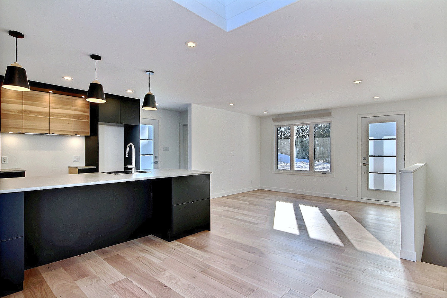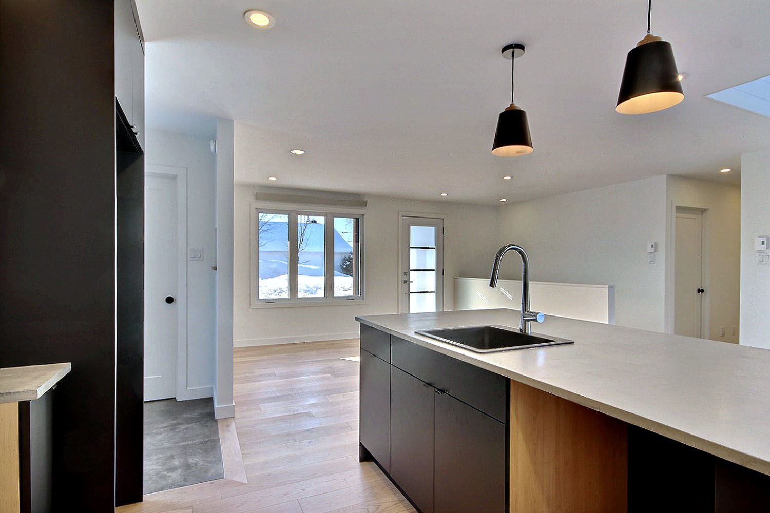 ingénierie en chêne, reconfiguration des pièces autant à l’étage qu’au sous-sol, en plus de revoir le design