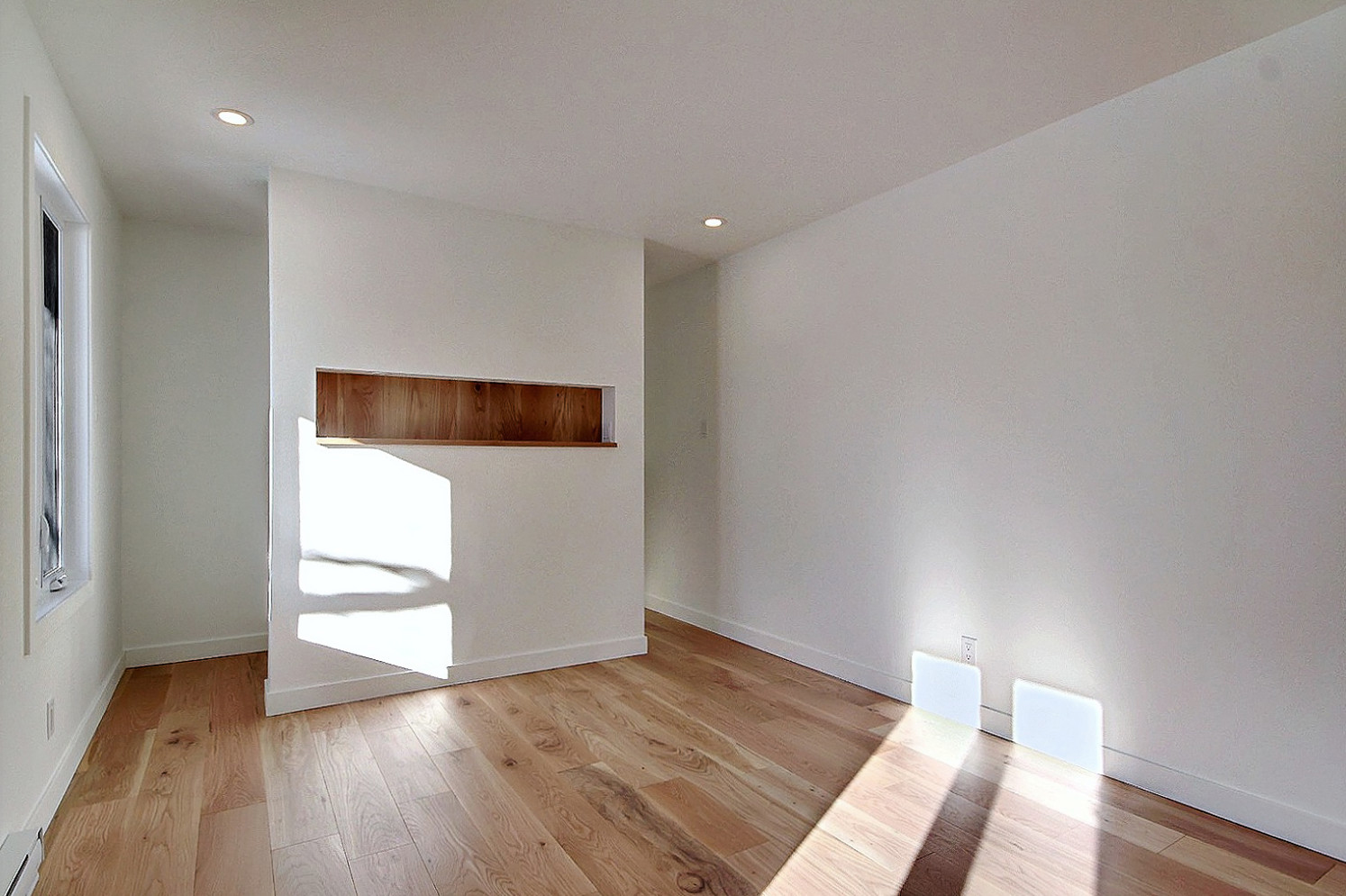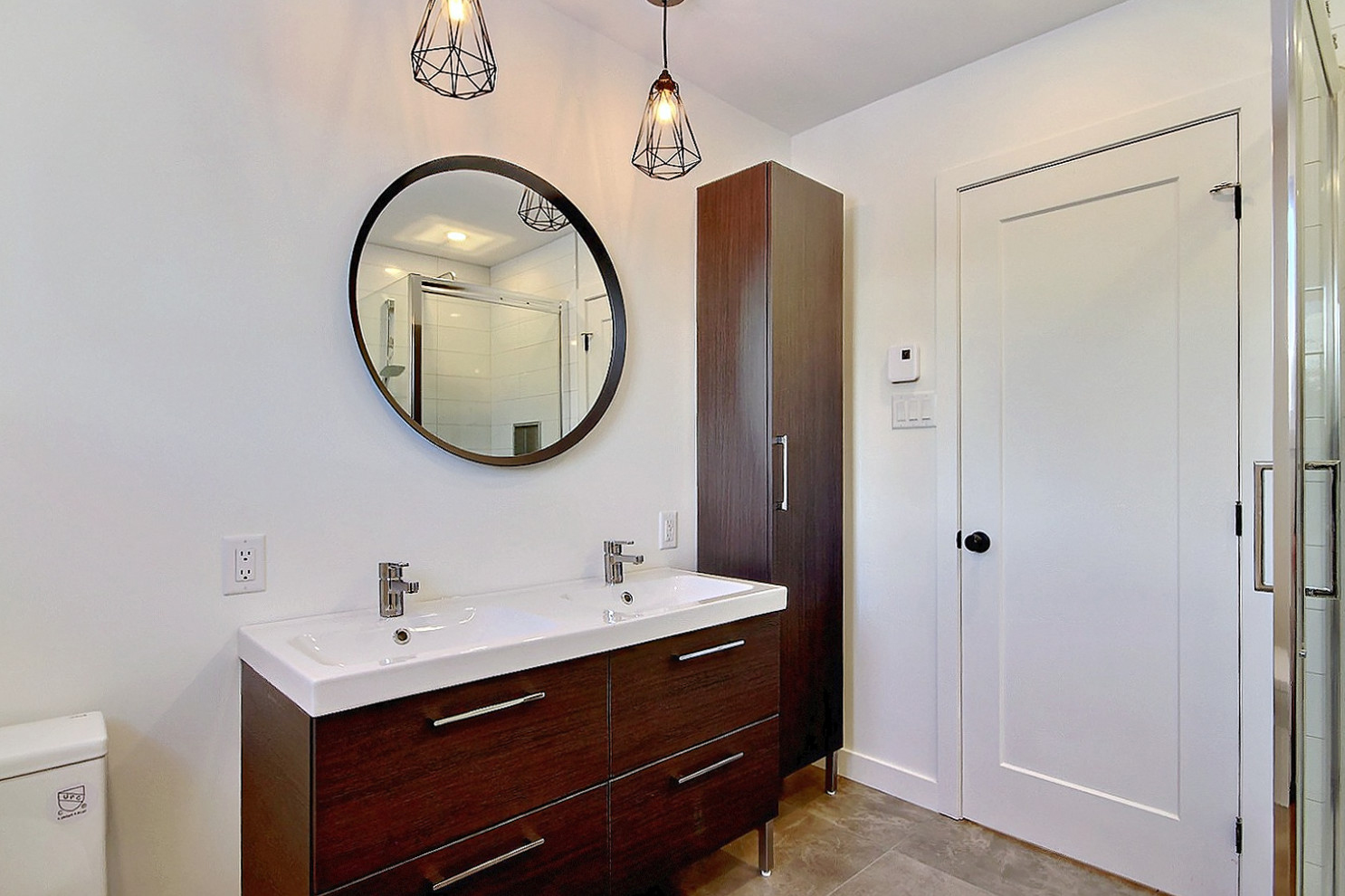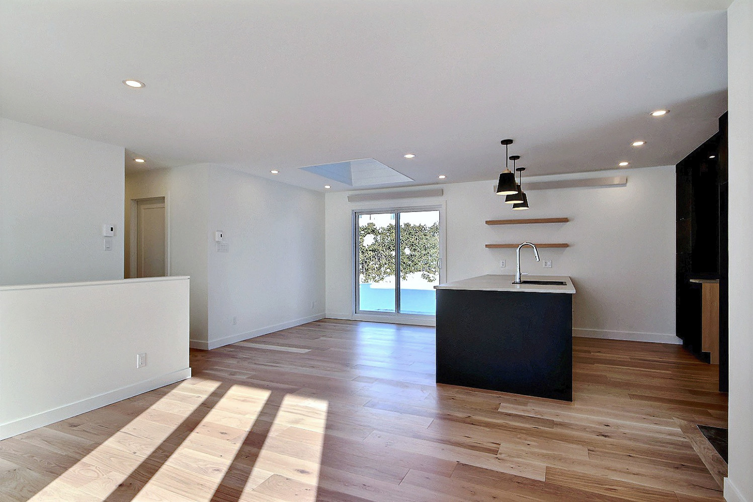 ingénierie en chêne, reconfiguration des pièces autant à l’étage qu’au sous-sol, en plus de revoir le design