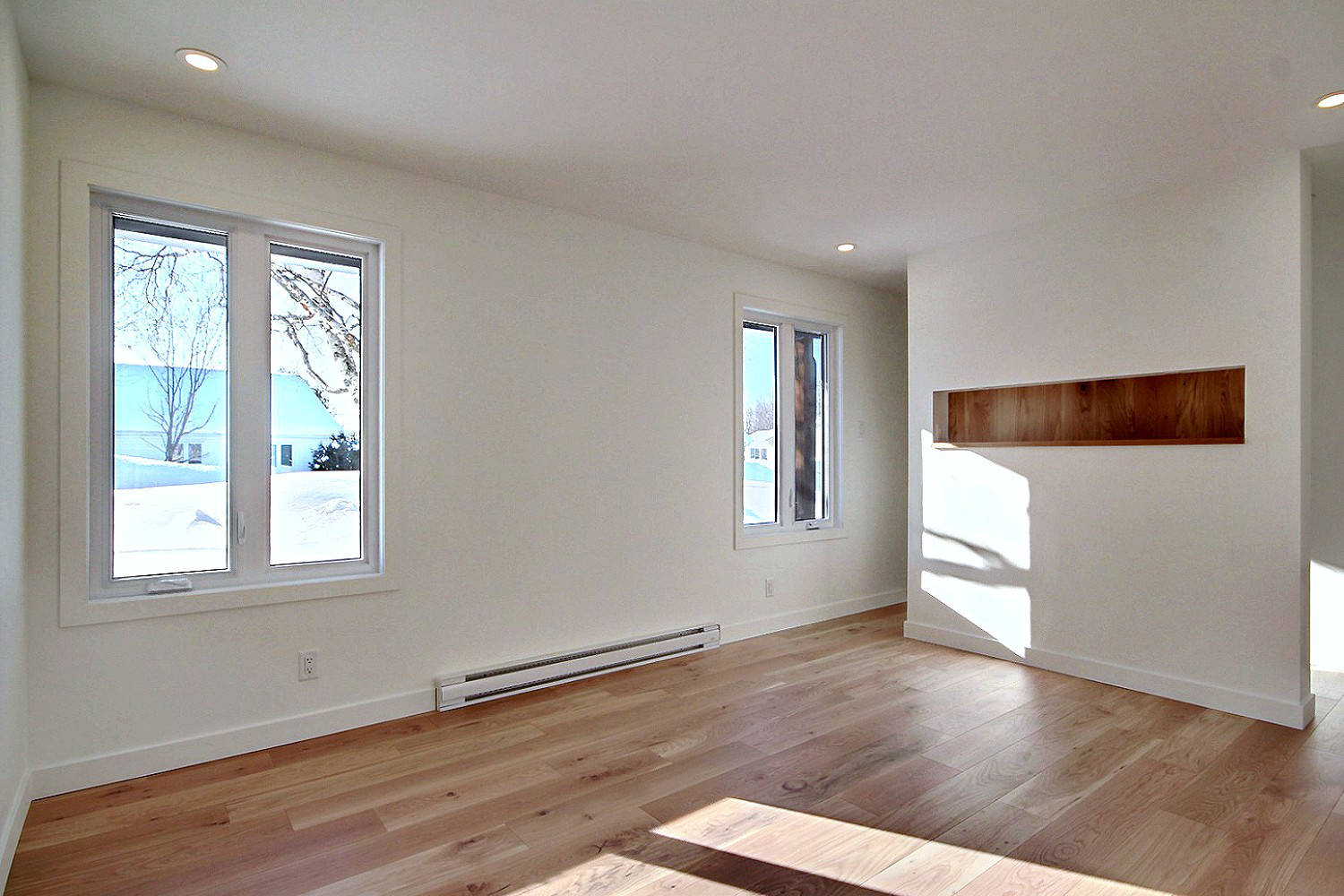 Remplacement des fenêtres et de la porte-patio, isolation refaite complètement, mis en place d’un plancher