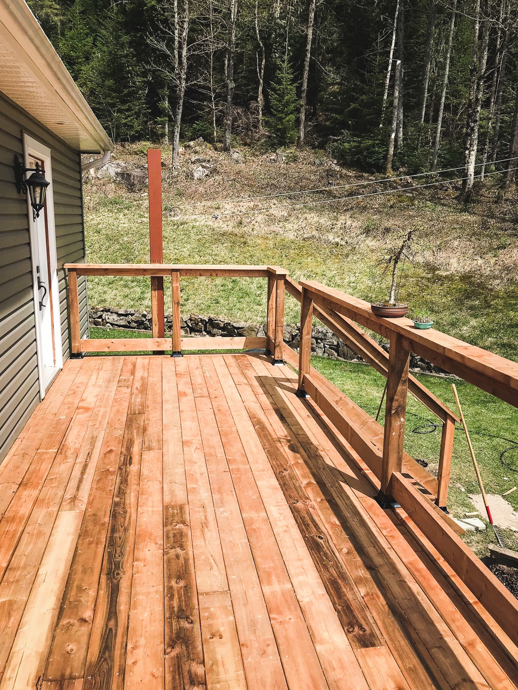 côté afin d’aller rejoindre la porte arrière. Terrasse parfaite pour bien profiter de l’été.